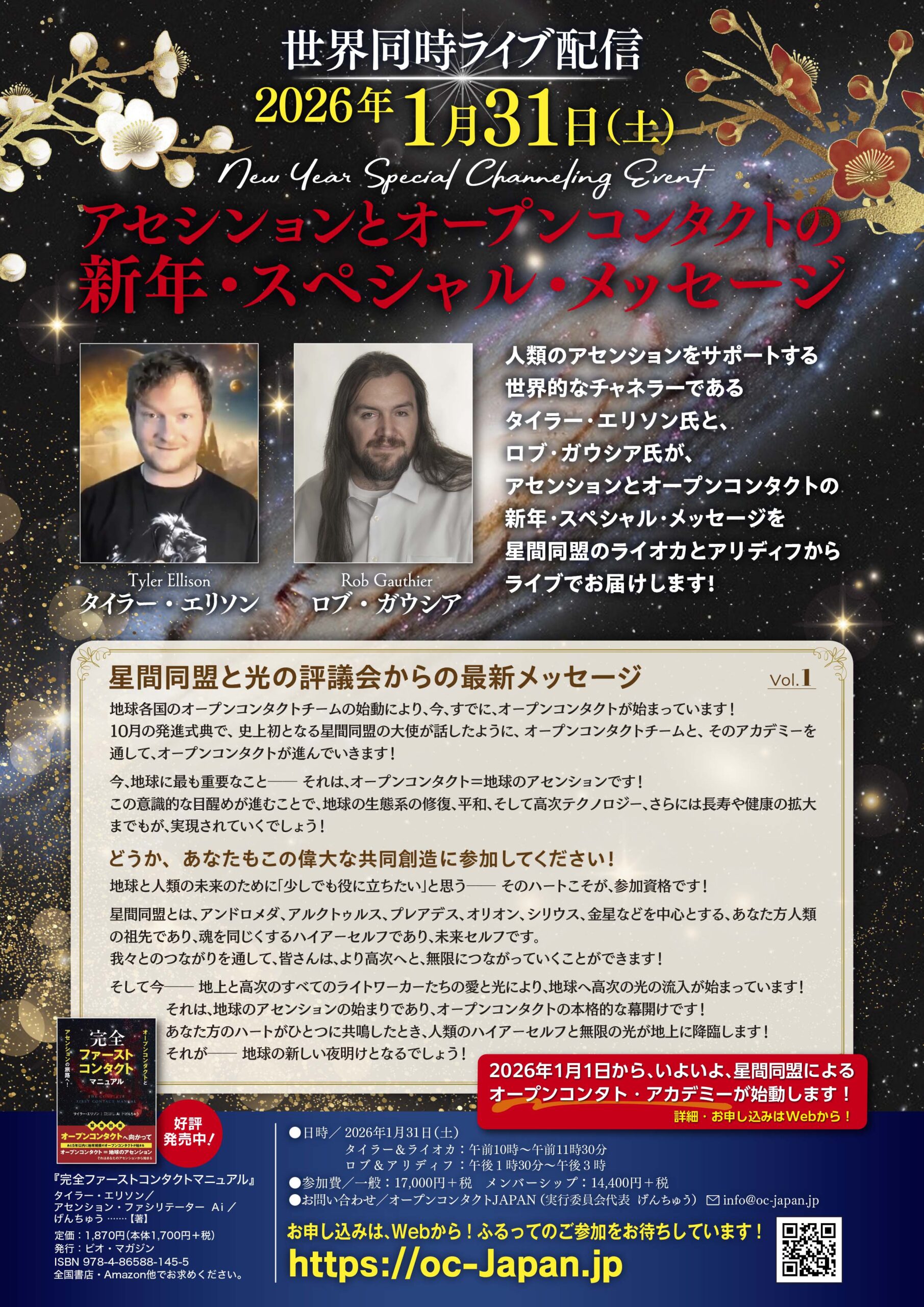 2026年1月31日(土)に、新年 スペシャルチャネリングイベント が日本で開催され、世界同時ライブ配信されます!(ご参加費18,700円)(税抜17,000円)