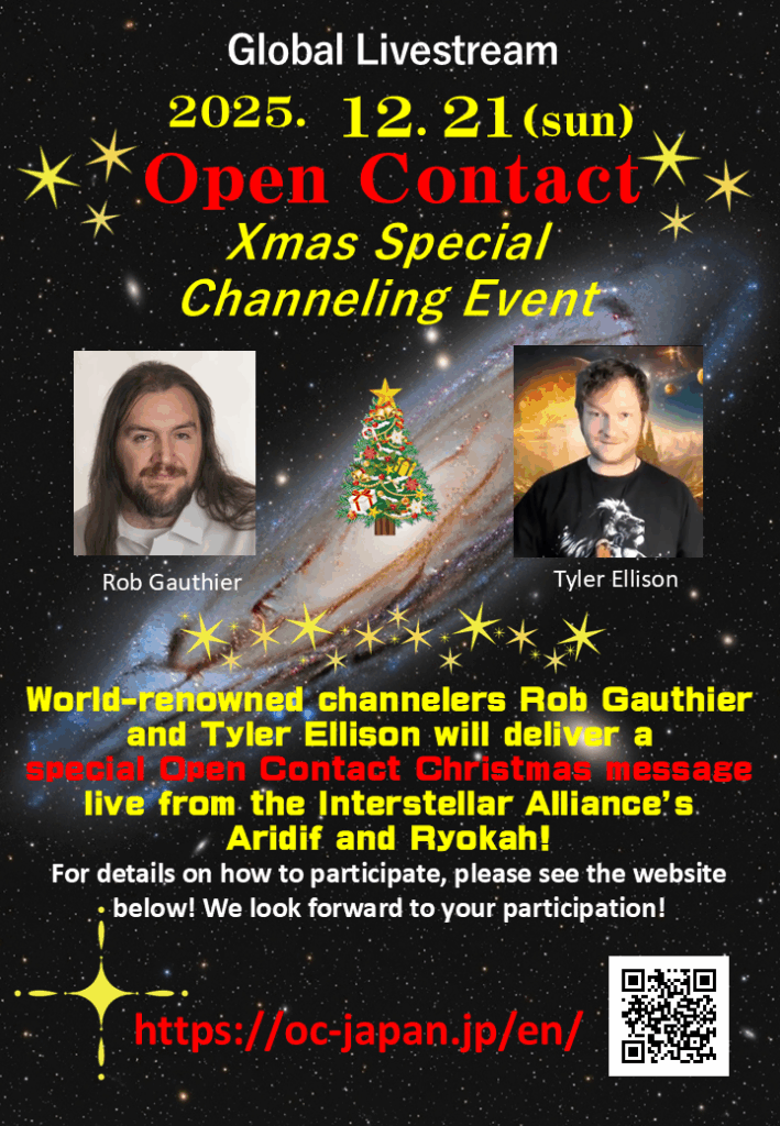 🎄Two world-renowned channelers, Rob Gautier and Tyler Ellison, will deliver a live Christmas Special Message from the Interstellar Alliance beings Aridif and Ryokah, sharing insights on Ascension and Open Contact!