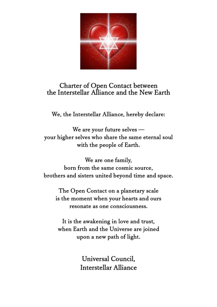 the “Charter of Open Contact between the Interstellar Alliance and the New Earth.”